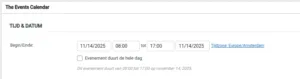 Klik op Nieuw Evenement toevoegen. Je komt dan in eenzelfde scherm als bij berichten toevoegen.