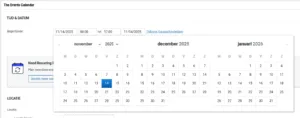 In de datumprikker zoek je de datum en selecteerd deze, dit word ook meteen in het volgende datumveld weergegeven