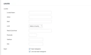 Als dit de eerste locatie is die je toevoegd dan krijg je dit scherm te zien. Heb je reeds een of meerdere locaties toegevoegd dat staat er in plaats van dit hele veld een keuze menu van waaruit je kunt kiezen waar het is en worden alle gegevens die er bij horen opgehaald en in het overzicht op de site getoond