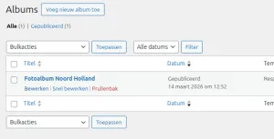 Als je op albums klikt verschijnt het album dat is ingesteld voor de betreffende website.