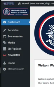 Bovenaan staat Dashboard. Hier kom je terecht als je bent ingelogd. Hier kunnen mededelingen en dergelijke staan evenals een welkomstwoord.