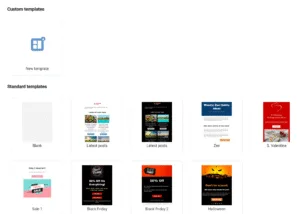 Dan klik je op “Nieuwe Toevoegen” en je krijgt een scherm te zien met enkele voorgedefinieerde templates die je kunt bewerken. Maar het mooiste is om zelf vanaf het begin iets op te maken.