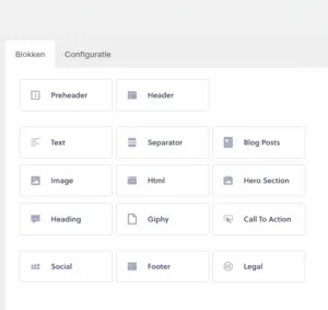 Simpel door klikken en slepen, voorgedefinieerde vakken naar de aanstaande nieuwsbrief te slepen en te vullen met teksten, koppen, afbeeldingen, leef je uit.