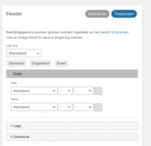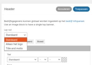 Tevreden met je Header dan klik je op “Toepassen” en je komt terug in het blokkenscherm.