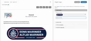 Hier is het ook net als bij de berichten of evenementen, ga naar het rechter tabblad en klik op het pictogram voor de afbeelding. Je kont dan in de mediamap terecht en kunt je afbeelding uitkiezen of uploaden vanaf je computer en dan invoegen. Onder het voorbeeldje kun je nog een alternatieve tekst invullen voor mensen die met een visuele beperking leven en de schermreader gebruiken