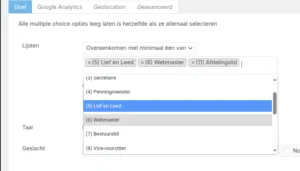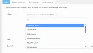 Bij lijsten geef je aan naar wie de nieuwsbrief verzonden moet worden