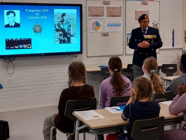 De school vroeg of er een mogelijkheid was, om iets in de klas te vertellen. Nu heb ikzelf als “Veteraan in de klas” vanuit het Veteraneninstituut (VI) regelmatig een presentatie gegeven en wilde dit wel verzorgen. Ook dit was een leuk moment om weer eens voor de klas te staan.