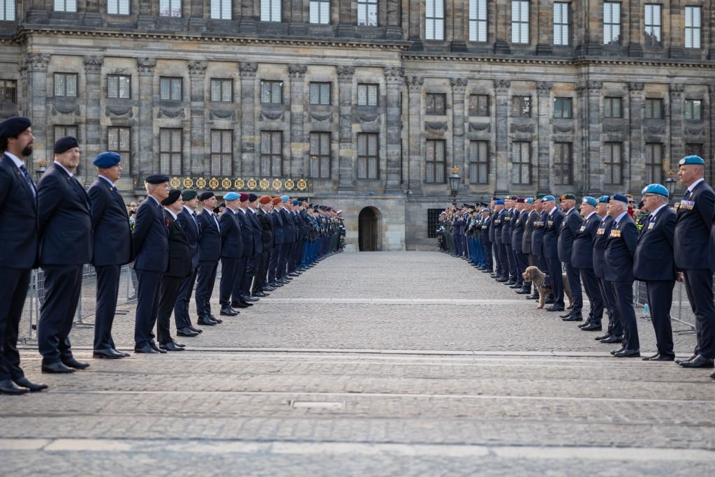 Tijdens de Nationale Herdenking op de Dam in Amsterdam vormen zestig veteranen en veertig actief ...